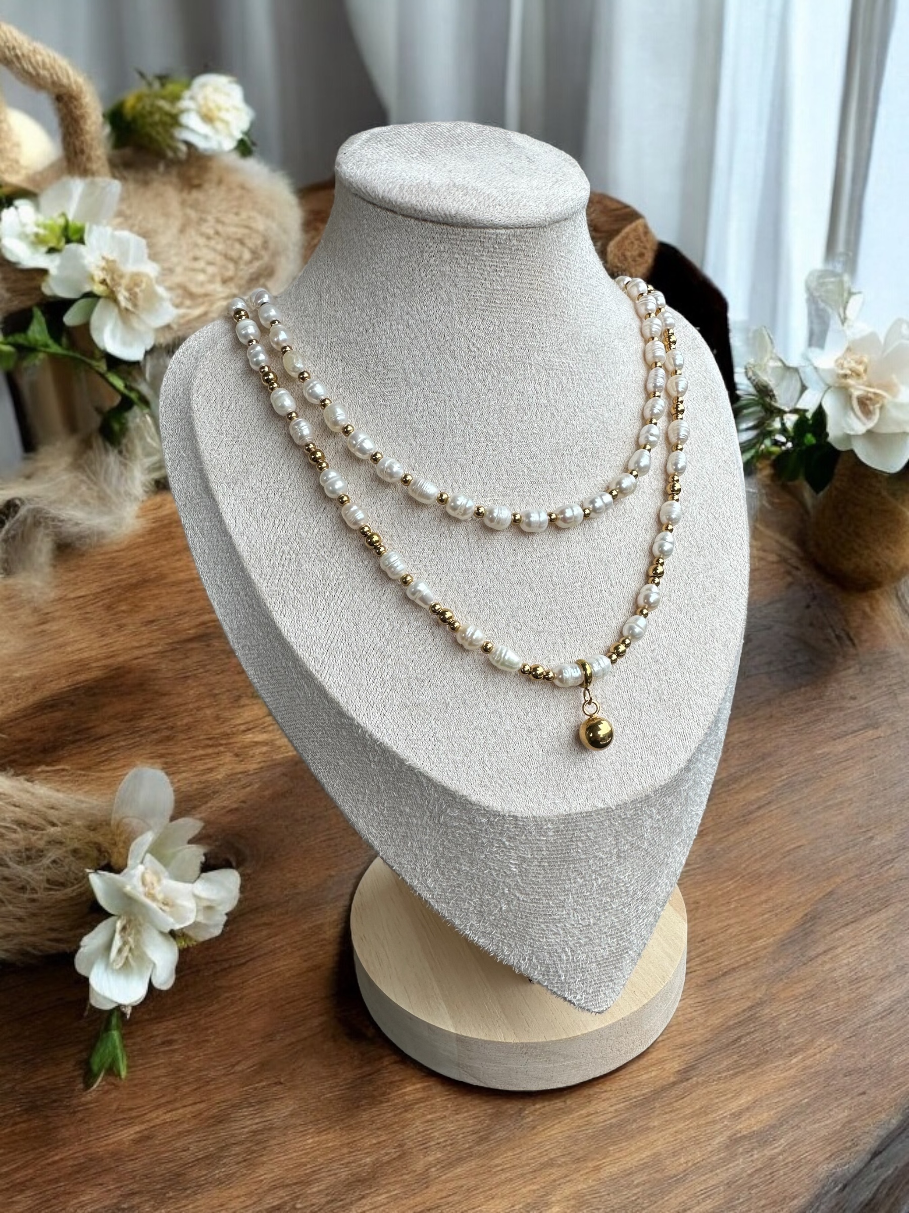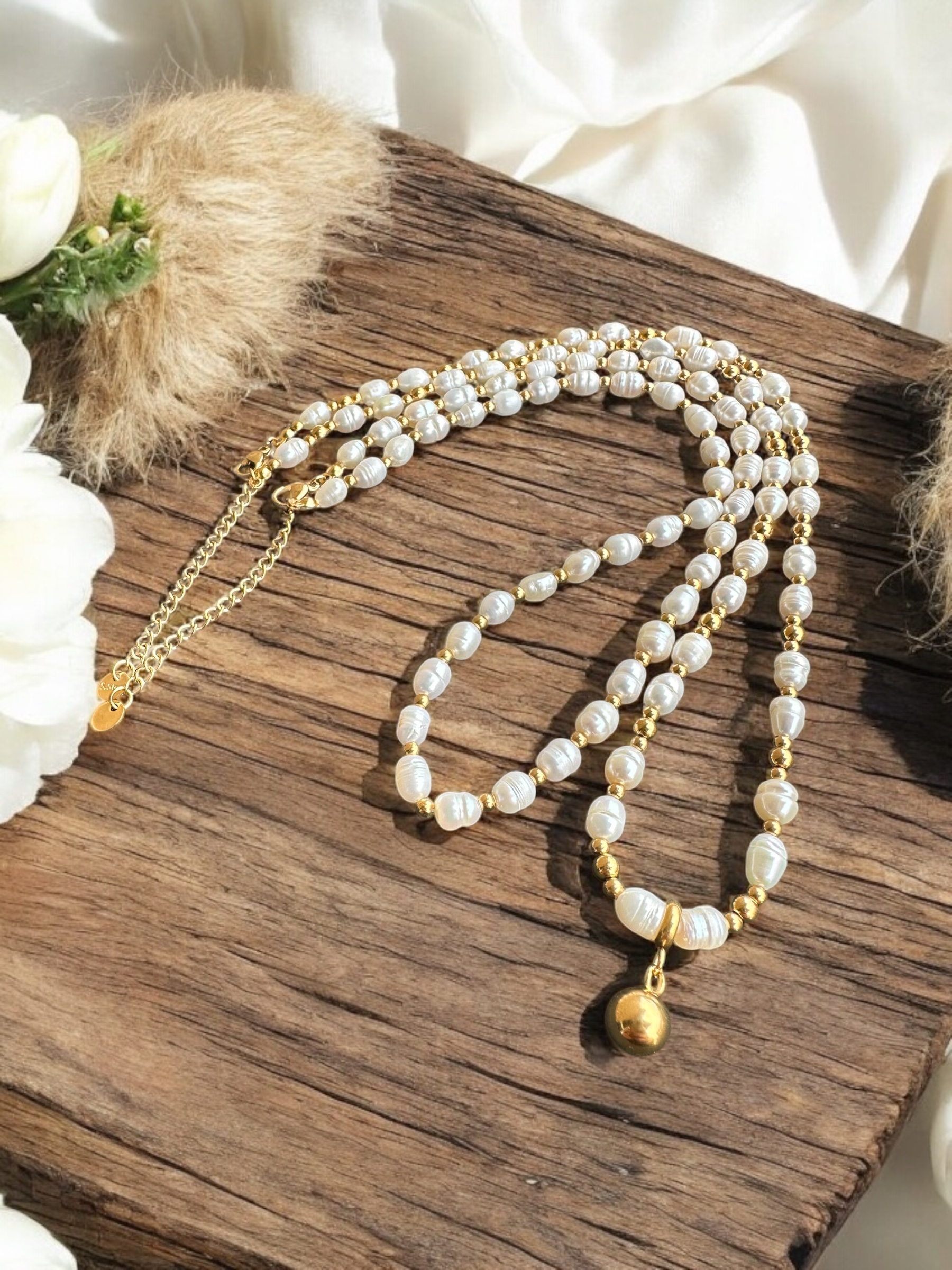 Diese eleganten Ketten verbinden zeitlose Eleganz mit echter Handwerkskunst. Mit ihren echten Süßwasserperlen und dem goldfarbenen Finish verleihen sie jedem Outfit eine luxuriöse Note. Die sorgfältig ausgewählten Perlen sorgen für einen natürlichen Schimmer und machen jedes Stück einzigartig. Hergestellt aus rostfreiem Edelstahl sind die Ketten langlebig, hypoallergen und somit sowohl für den Alltag als auch für besondere Anlässe perfekt geeignet.