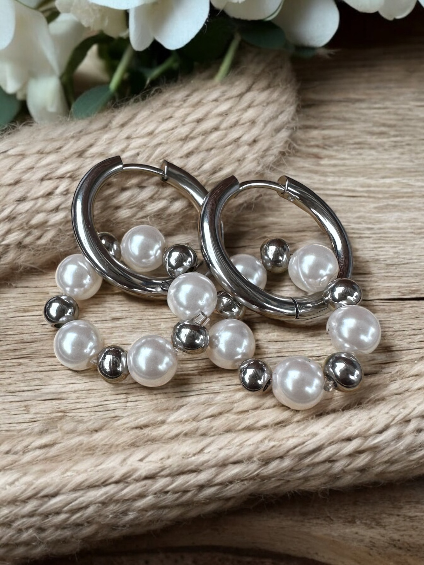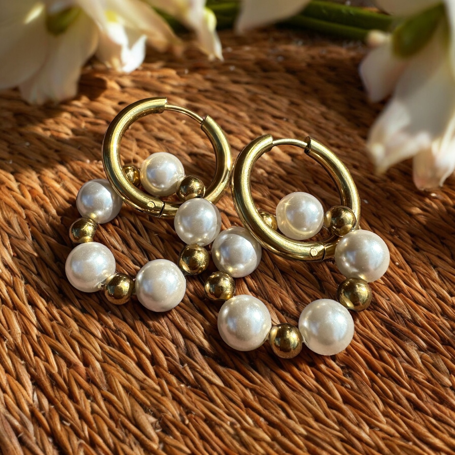 Diese eleganten Ohrringe aus Edelstahl verbinden zeitlose Eleganz mit echter Handwerkskunst. Mit ihren Perlmuttperlen und dem goldfarbenen Finish verleihen sie jedem Outfit eine luxuriöse Note. Die Perlen sorgen für einen natürlichen Schimmer und machen jedes Stück einzigartig. Hergestellt aus rostfreiem Edelstahl sind die Ohrringe langlebig, hypoallergen und somit sowohl für den Alltag als auch für besondere Anlässe perfekt geeignet.