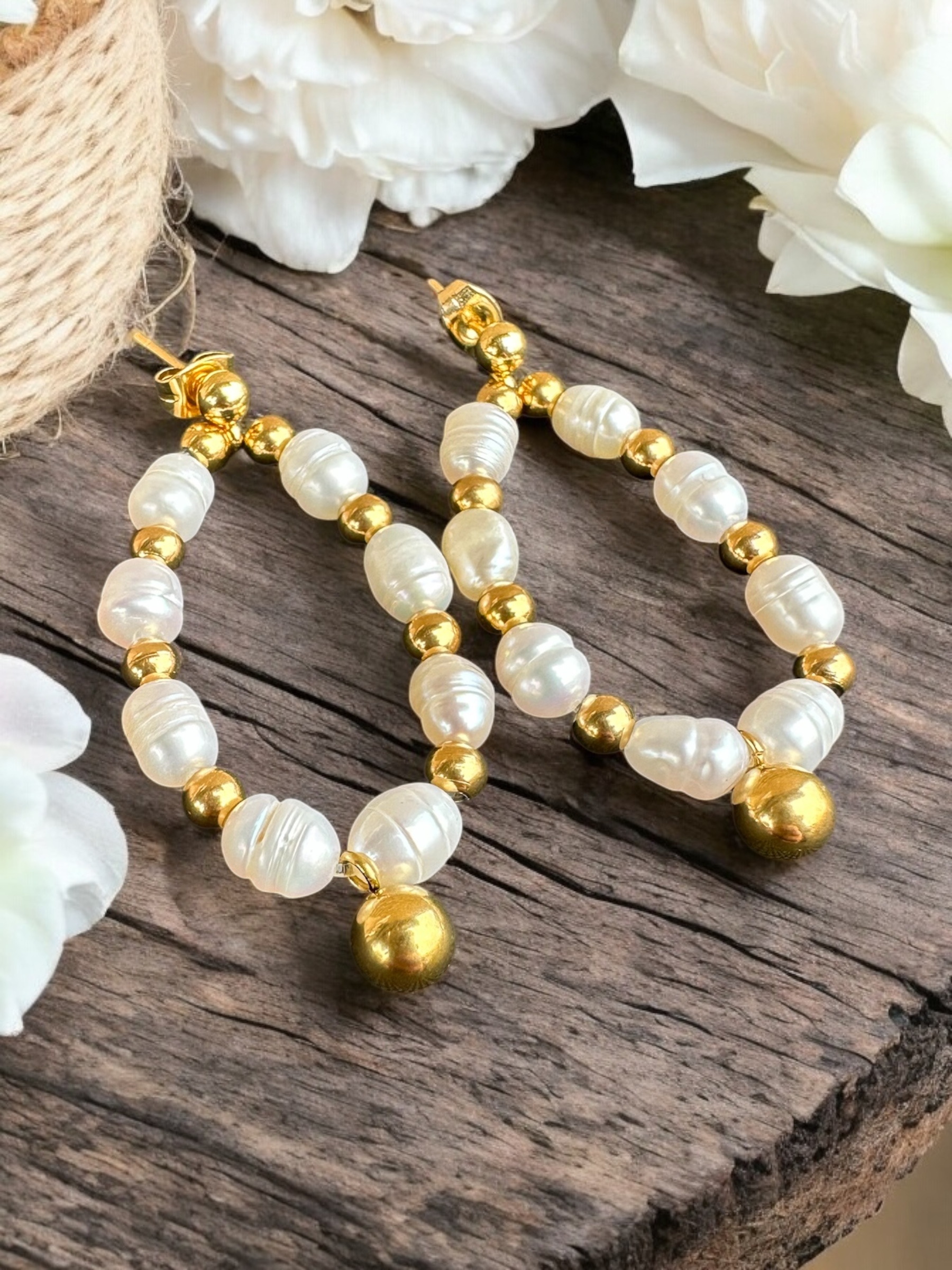 Diese eleganten Ohrringe aus Edelstahl verbinden zeitlose Eleganz mit echter Handwerkskunst. Mit den echten Süßwasserperlen und dem goldfarbenen Finish verleihen sie jedem Outfit eine luxuriöse Note. Die sorgfältig ausgewählten Perlen sorgen für einen natürlichen Schimmer und machen jedes Stück einzigartig. Hergestellt aus rostfreiem Edelstahl sind die Ohrringe langlebig, hypoallergen und somit sowohl für den Alltag als auch für besondere Anlässe perfekt geeignet.