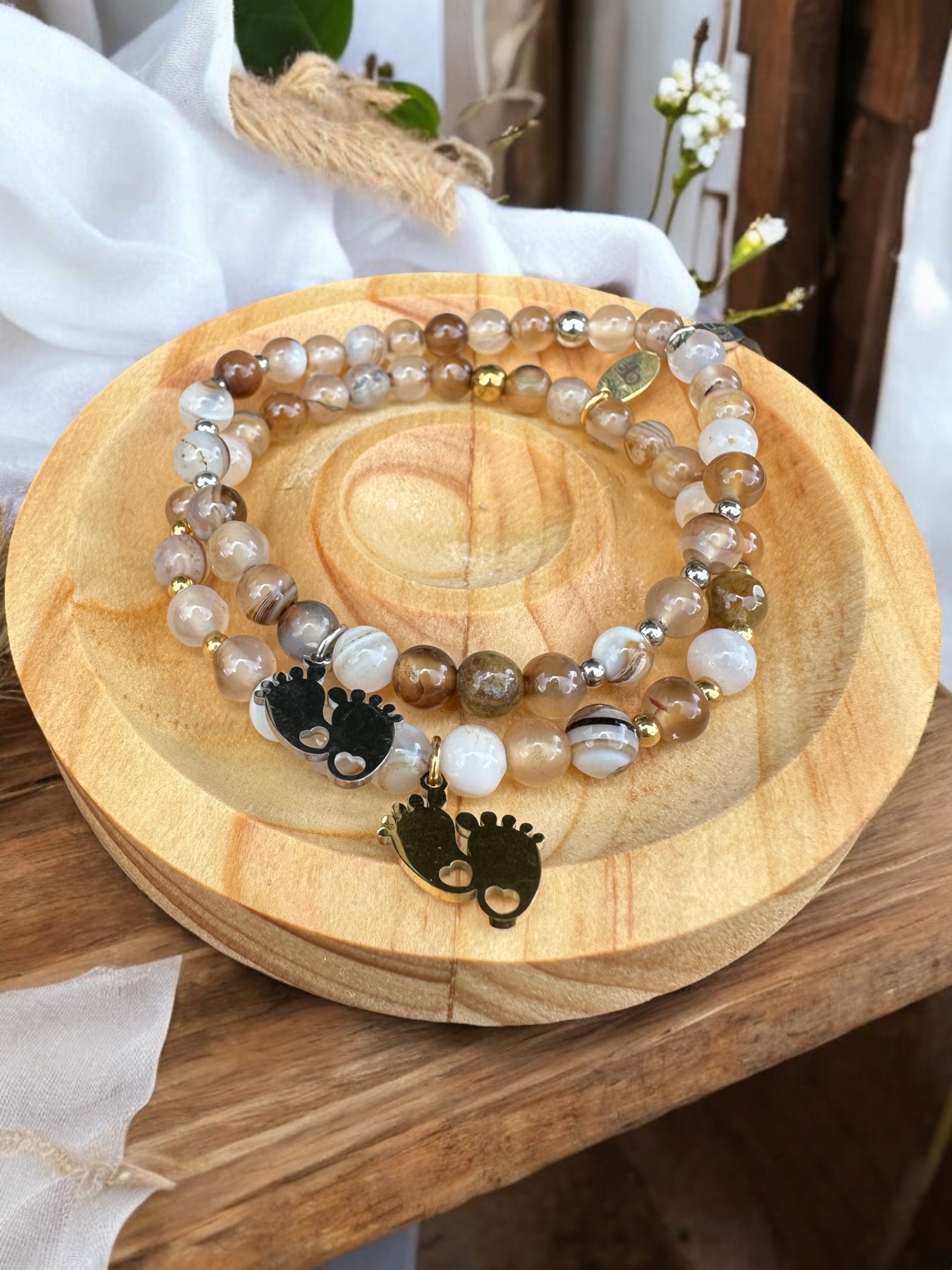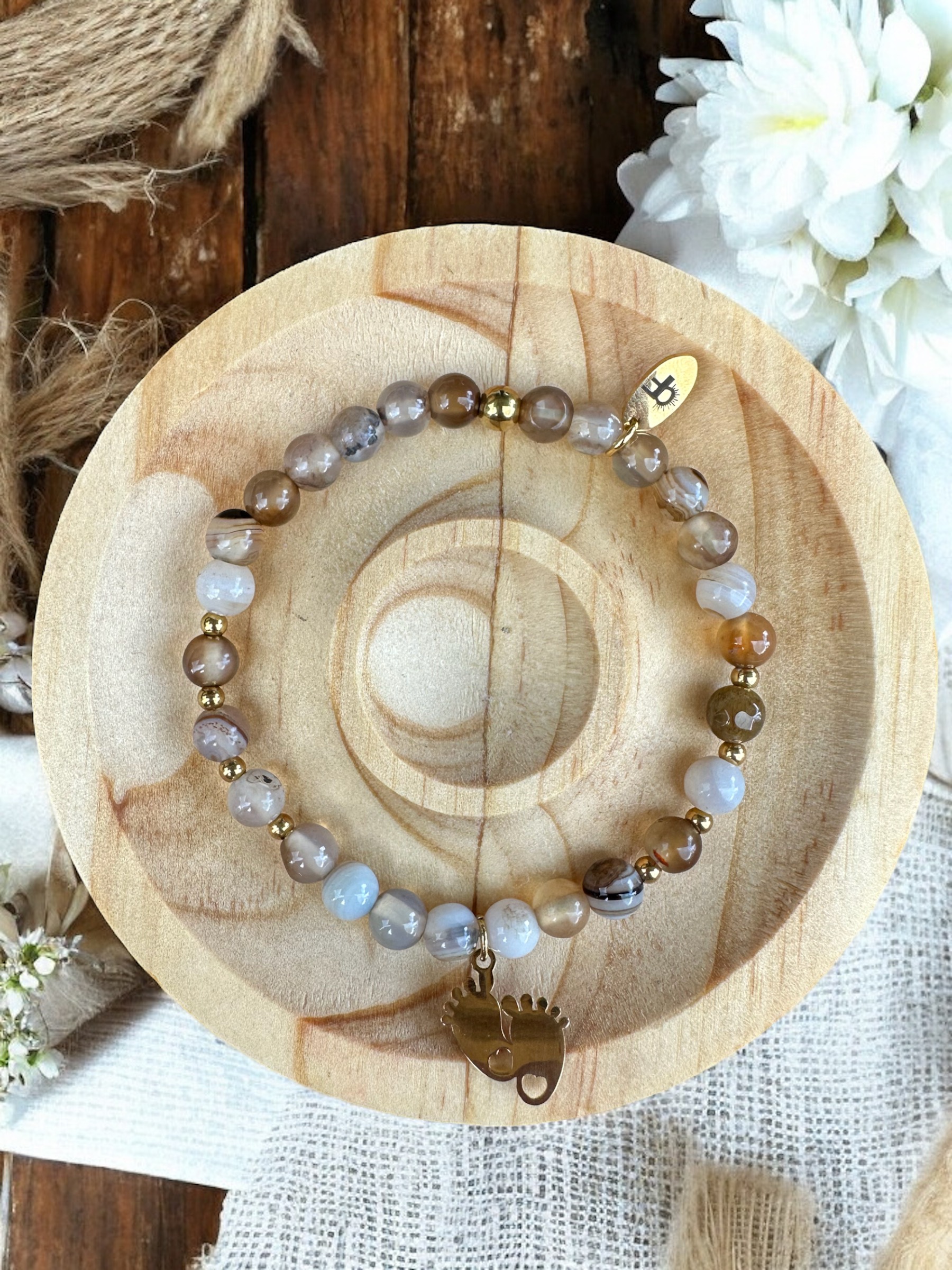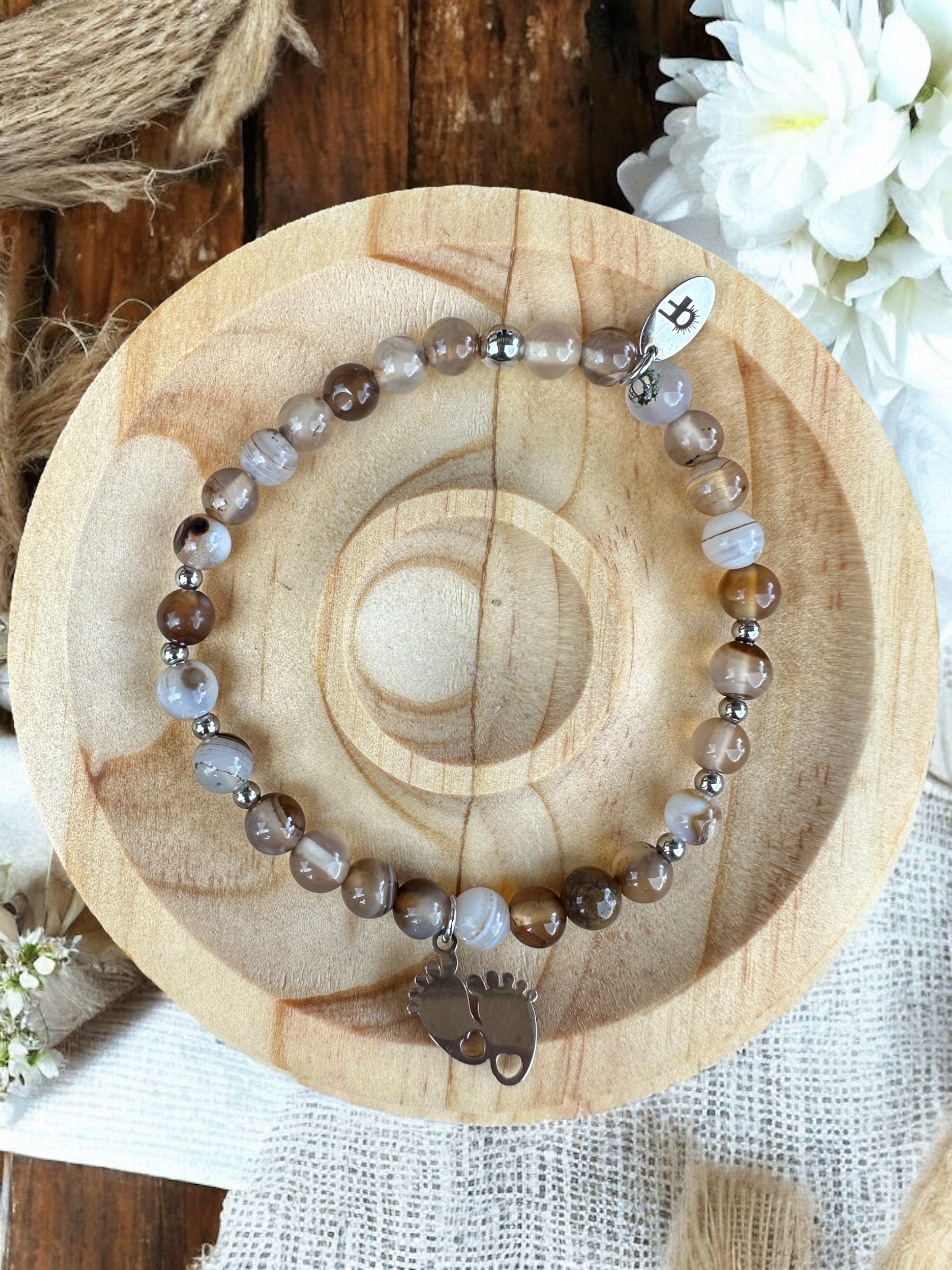 Dieses wunderschöne Schwangerschaftsschutzarmband aus Botswana Achat begleitet dich in der aufregenden Zeit der Erwartung und bietet dir eine besondere Energie. Der Botswana Achat fördert emotionale Stabilität und unterstützt dich dabei, Ängste und Sorgen abzubauen. Seine sanften Farben wirken beruhigend und helfen, innere Balance zu finden.Zusätzlich stärkt dieses Armband die Verbindung zwischen dir und deinem ungeborenen Kind, indem es Schutz und Geborgenheit schenkt. Die harmonische Energie des Steins wirkt beruhigend und fördert ein positives Umfeld für deine Schwangerschaft. Trage dieses Armband, um eine liebevolle Aura zu schaffen und das Vertrauen in deinen Weg als werdende Mutter zu stärken.