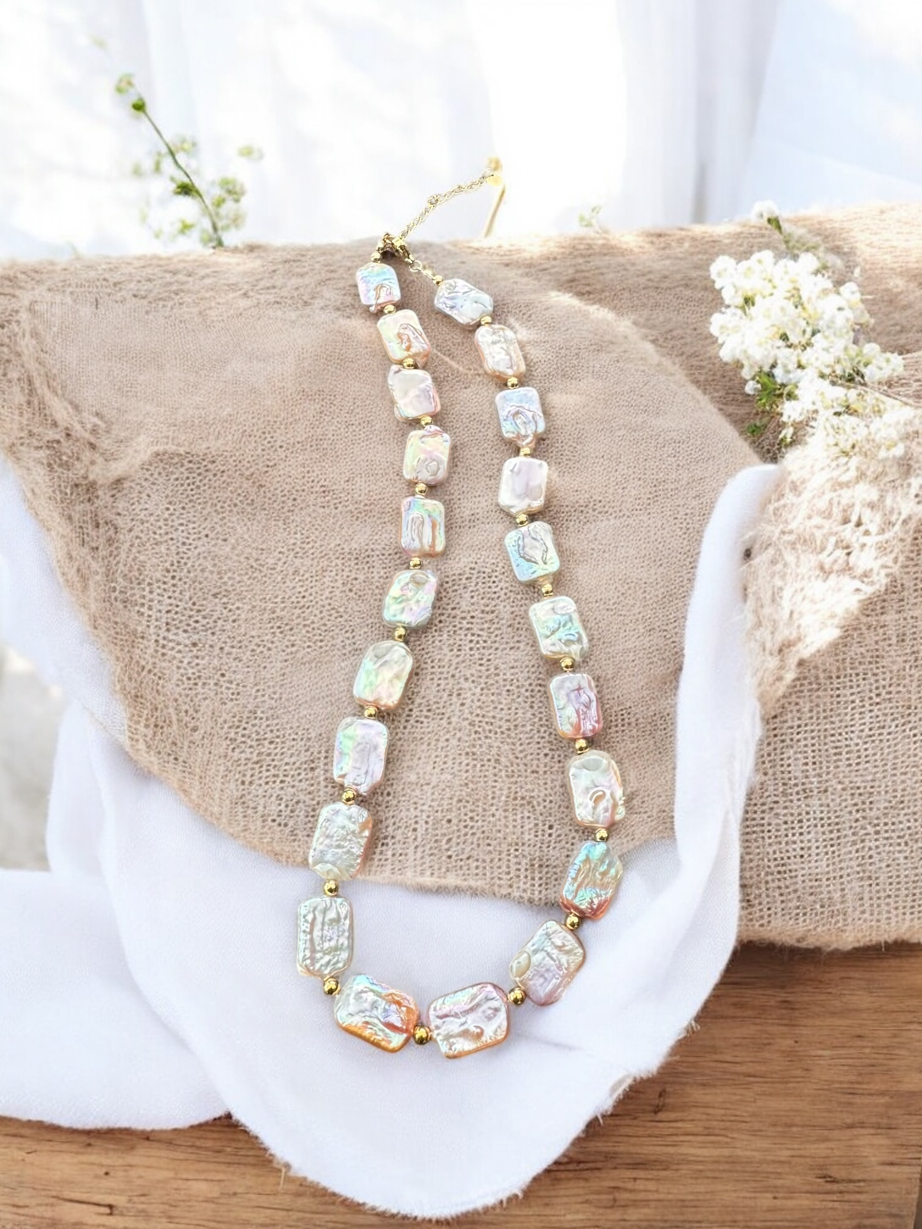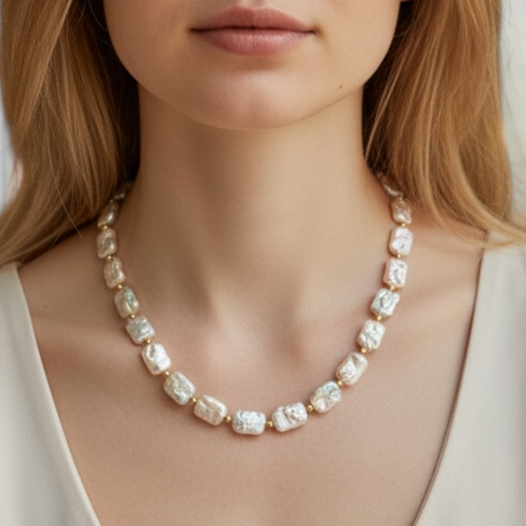 Die hochwertige Verarbeitung mit Elementen aus robustem Edelstahl verleiht der Kette nicht nur eine moderne Leichtigkeit, sondern sorgt auch für Langlebigkeit und Hautverträglichkeit. Ob im Alltag oder zu besonderen Anlässen – diese Perlenkette setzt einen stilvollen Akzent und unterstreicht deine natürliche Ausstrahlung auf elegante Weise.