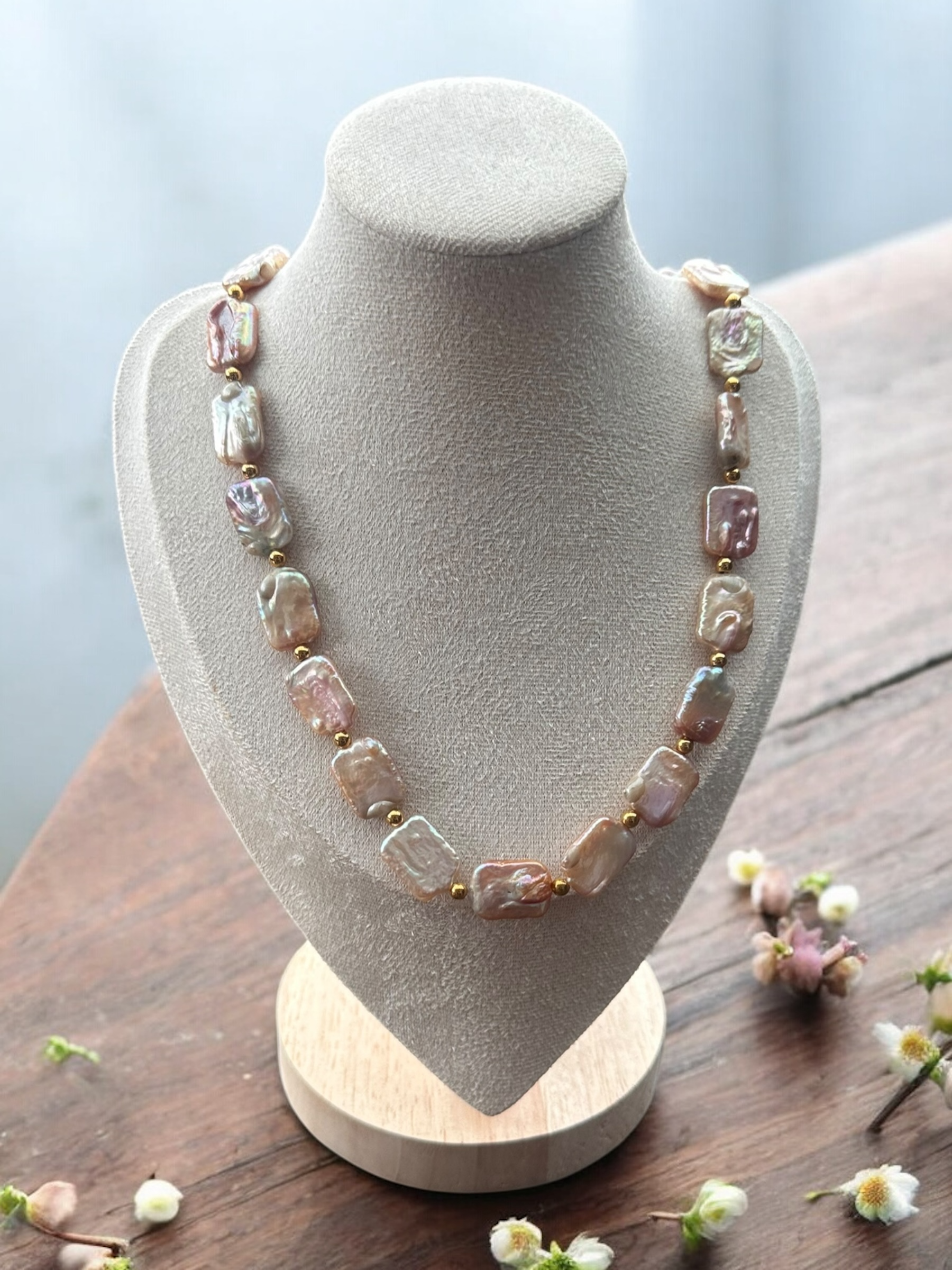 Diese besondere Kette vereint natürliche Schönheit mit zeitloser Eleganz. Die echten Barock-Süßwasserperlen schimmern in einem zarten Lila-Rosé-Ton und faszinieren durch ihre individuelle Form und ihren edlen, sanften Glanz. Jede Perle ist ein Unikat und macht die Kette zu einem ganz persönlichen Schmuckstück.
